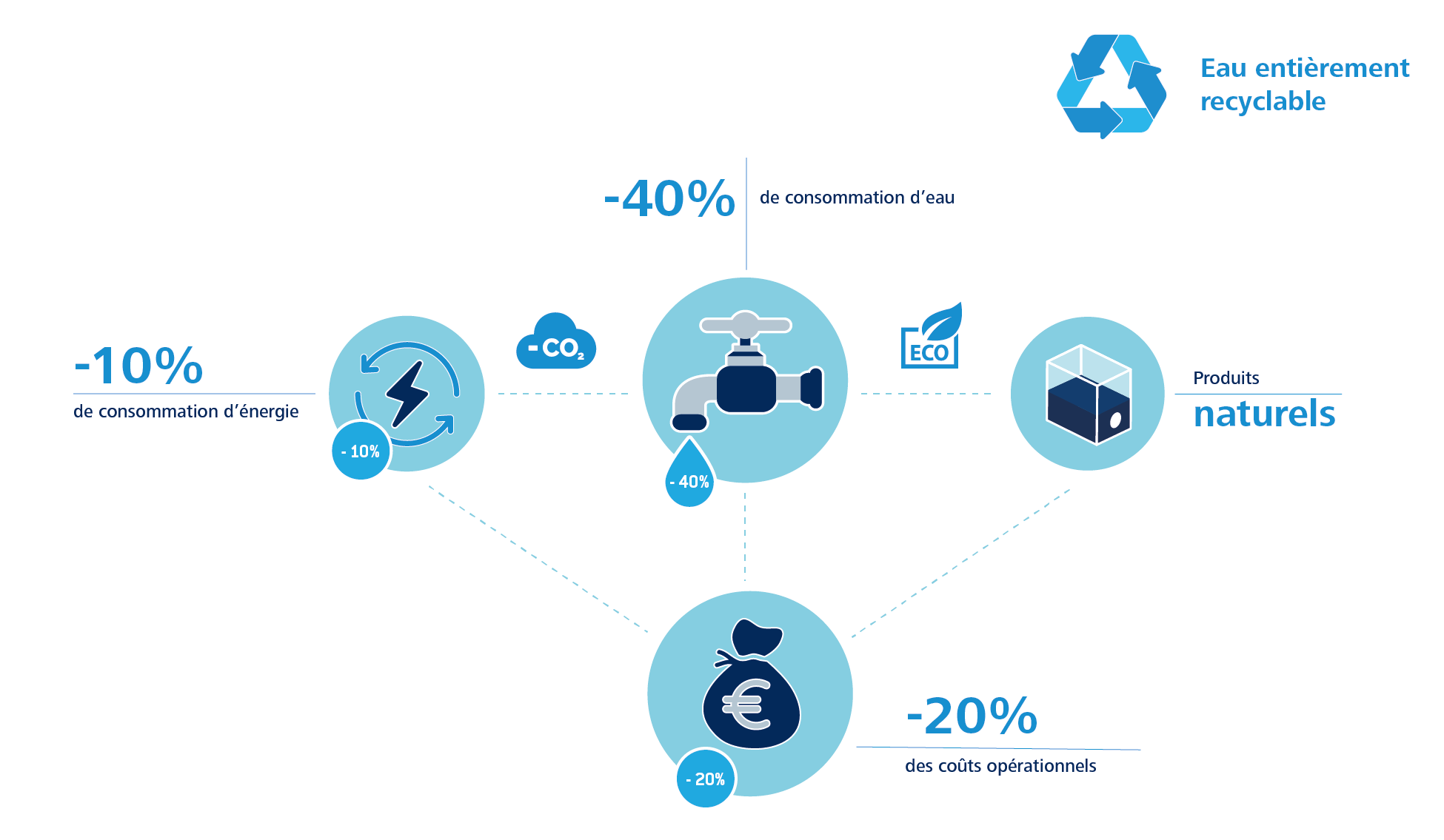 Once it has passed through the filtration system, the water is pure, natural and free from any chemicals. Water that is kind to both swimmers’ health and our planet.